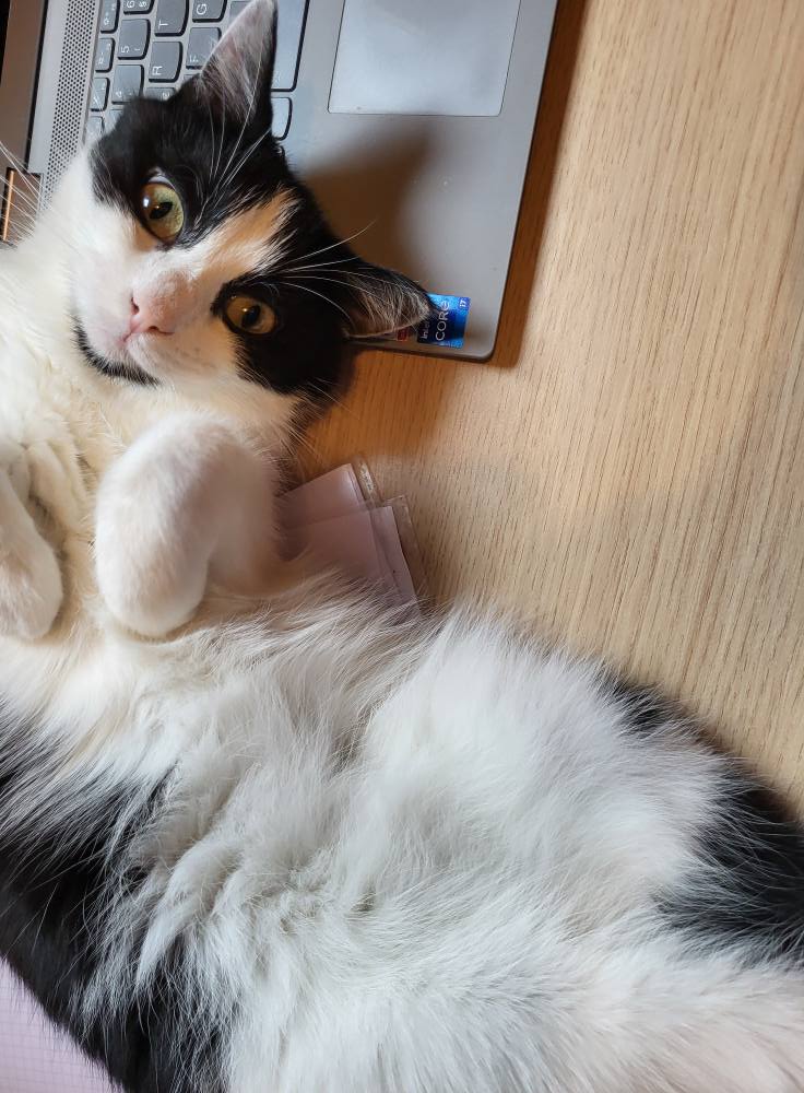 Xena (Poes geadopteerd uit het asiel) viel me meteen op – niet omwille van haar foto – maar van de beschrijving: een katje die geen schijn van kans maakt bij doorsnee gezinnen die niet weten hoe om te gaan met een extreem angstige kat. Haar naam in het asiel op het moment van adoptie? Queen Doritos… Niet echt flatterend dus besloot ik haar een naam te geven die bij haar past: Xena, Warrior Princess. Ze werd geleidelijk aan geïntroduceerd bij ons thuis, kamer per kamer en op haar tempo. Totdat ze nu de ganse woning gebruikt en geniet van me gezelschap te houden terwijl ik thuis werk aan verslagen,… En dan vooral het liefst op je papieren…. Het was een uitdaging die ik aangegaan ben – wetende dat katjes met dit temperament (fobisch) – enorm vatbaar zijn voor o.a. onzindelijkheid, agressie,…. en ik ben zo dankbaar dat ik dat gedaan heb en dat zij mij haar vertrouwen geschonken heeft!